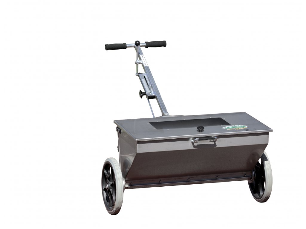Štěrbinová sečka a aplikátor je vyroben pro rovnoměrnou aplikaci trávníkového osiva a hnojiva. Perfektní výsledek pro všechny granulace. Na základě požadavku odborných zahradníků může být štěrbinový aplikátor vybaven úzkými koly (standardně dodáván s koly se vzdušnicemi), pro perfektní značení na připravených půdách pro výsev. Záběr 70 cm, obsah 40 litrů, váha 22 kg. Plynule nastavitelná stupnice zajišťuje optimální aplikaci dle konkrétních potřeb, kalibrace pro osiva a hnojiva EUROGREEN. Sypací štěrbina je vyrobena z nerez oceli s přesným otevíráním. Míchací hřídel je složena ze 3 ramen. Štěrbinový aplikátor Vám můžeme dodat také v šířce záběru 100 cm.